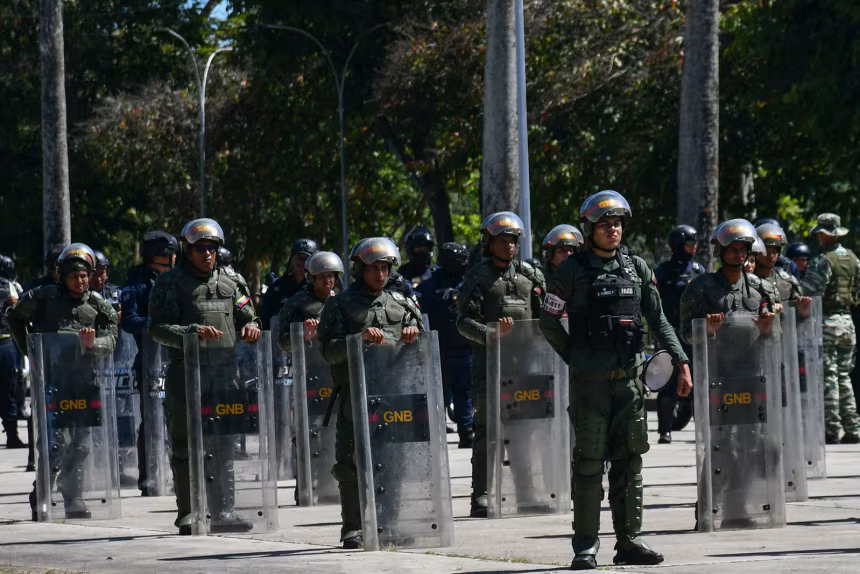 Members of the Bolivarian National Guard at Campo Carabobo in Valencia, Venezuela, on November 19, 2025. Jacinto Oliveros/AFP/Getty Images